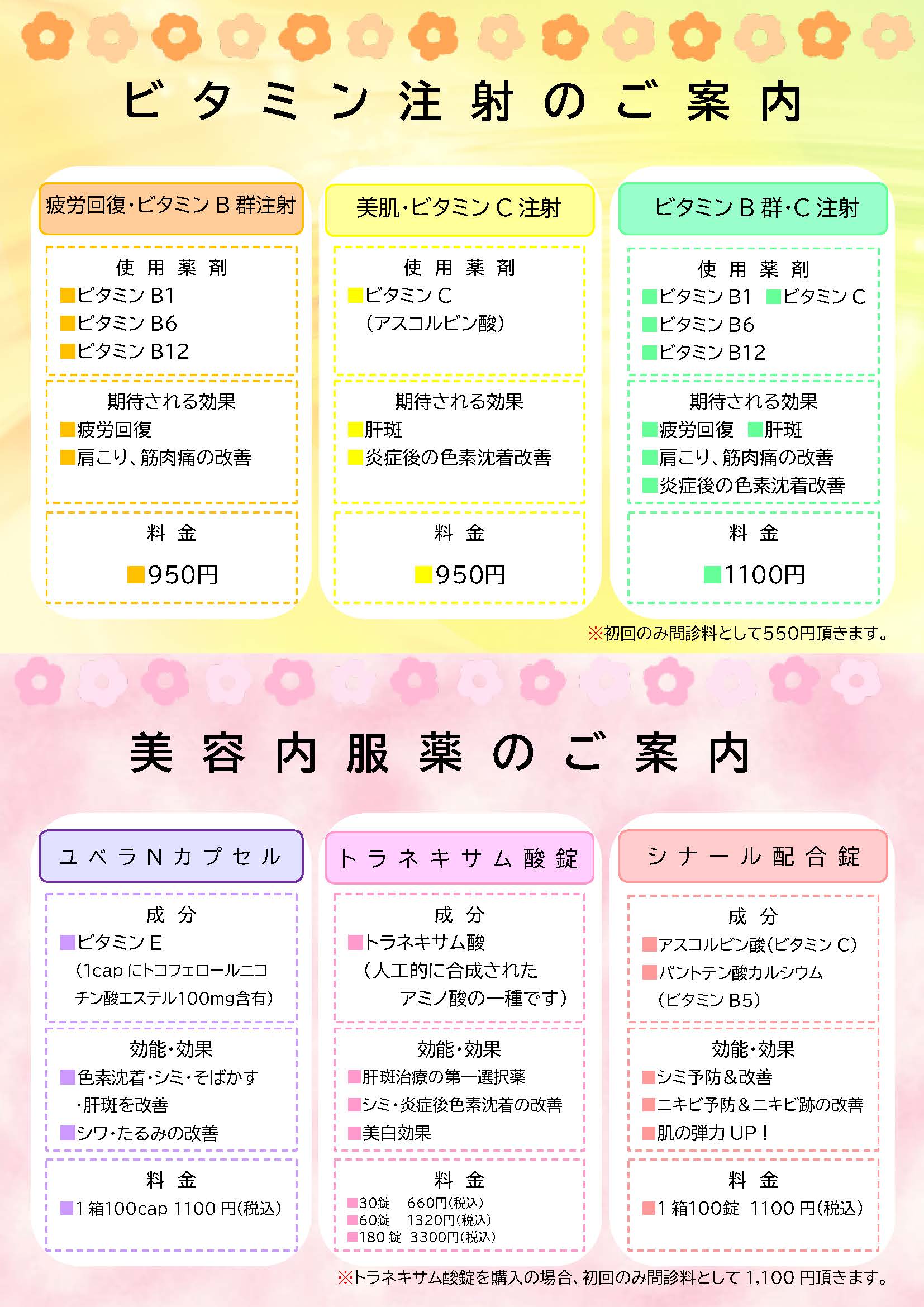 当院では、自費診療として、ビタミン注射、美容内服薬、エクエルプチ、AGA薬、ED薬を販売しております。