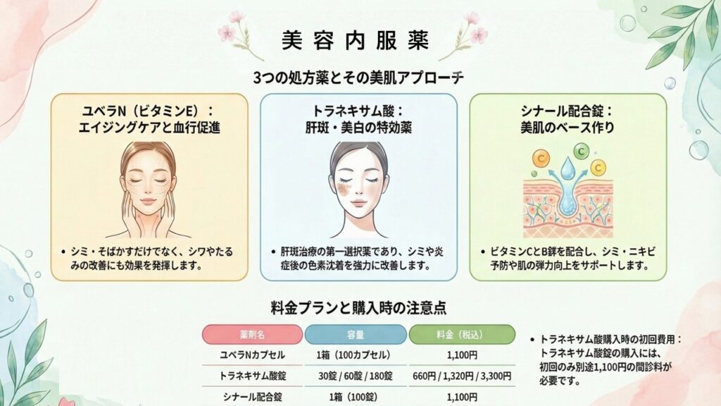 当院では、自費診療として、ビタミン注射、美容内服薬、エクエルプチ、AGA薬、ED薬を販売しております。