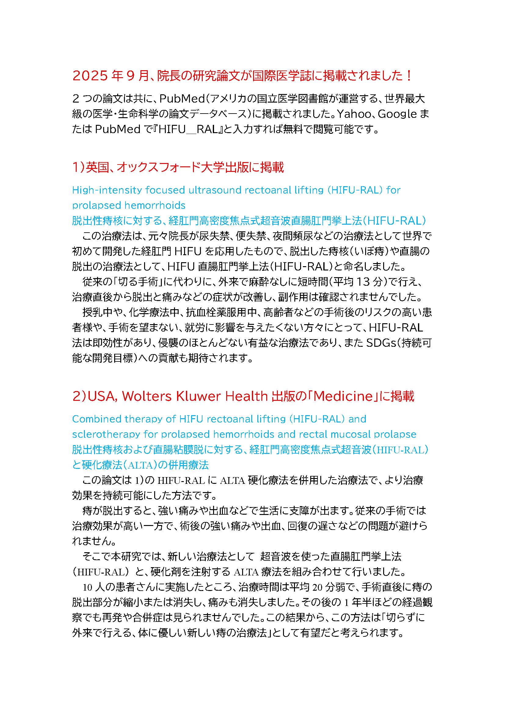 新患でいらっしゃる方は問診票の内容を伺います。問診票を事前にダウンロードしてお持ちください。
